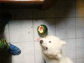 那天,阳光明媚,一只萨摩耶狗狗在院子里悠闲地晒太阳。突然,主人从厨房拿出一个巨大的西瓜,放在狗狗面前。萨摩耶瞪大了眼睛,仿佛看到了什么美味佳肴。它迫不及待地扑向西瓜,开始了它的“瓜”之旅。